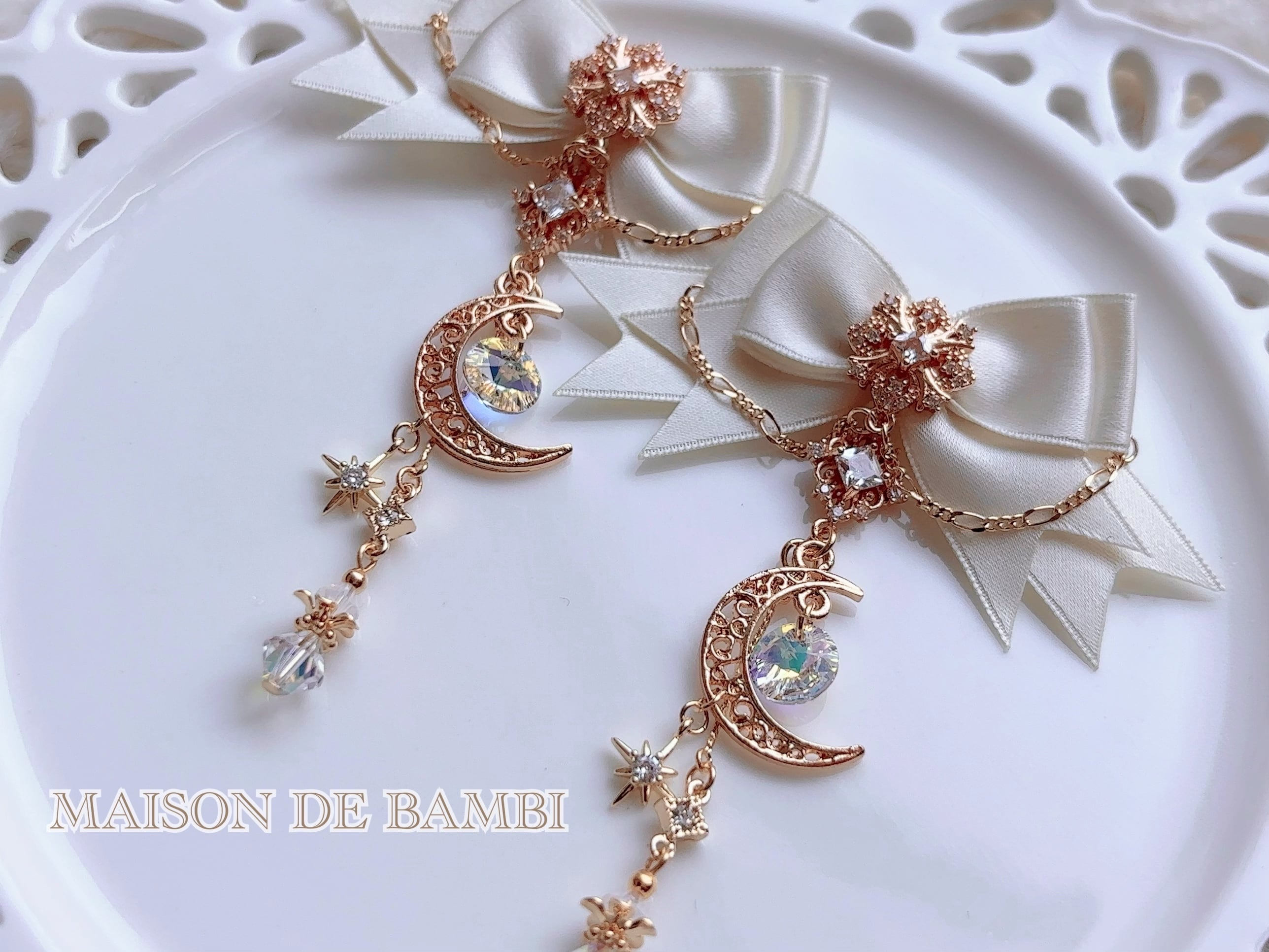月と星のリボン耳飾り