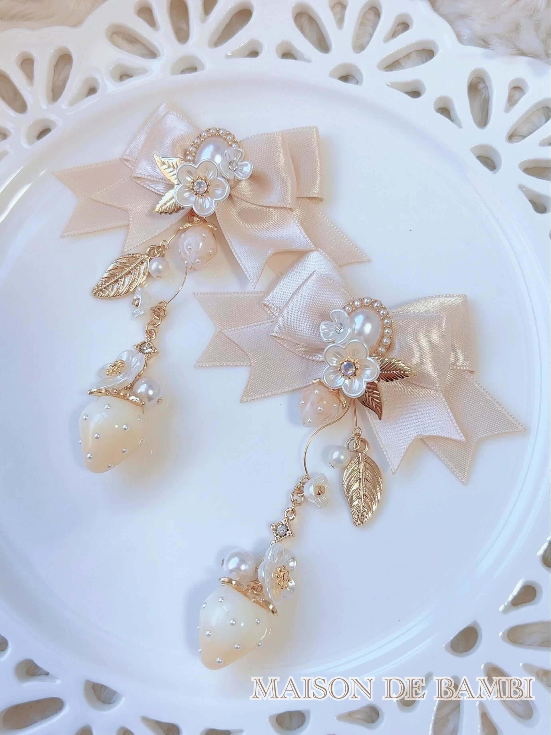 Fragaria(フラガリア)は、耳元で咲き誇る白い花と連なるいちごの形をした耳飾りです。